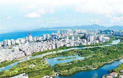 放眼望去,一条红蓝相间的彩色步道沿江蜿蜒,两侧蓝花楹、五色梅等植物随风摇曳,不时还有骑行者经过。