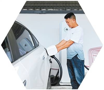 贵州贵阳市白云区泉湖公园液冷超充站,市民正在给新能源汽车充电。 贾 智摄(人民视觉)